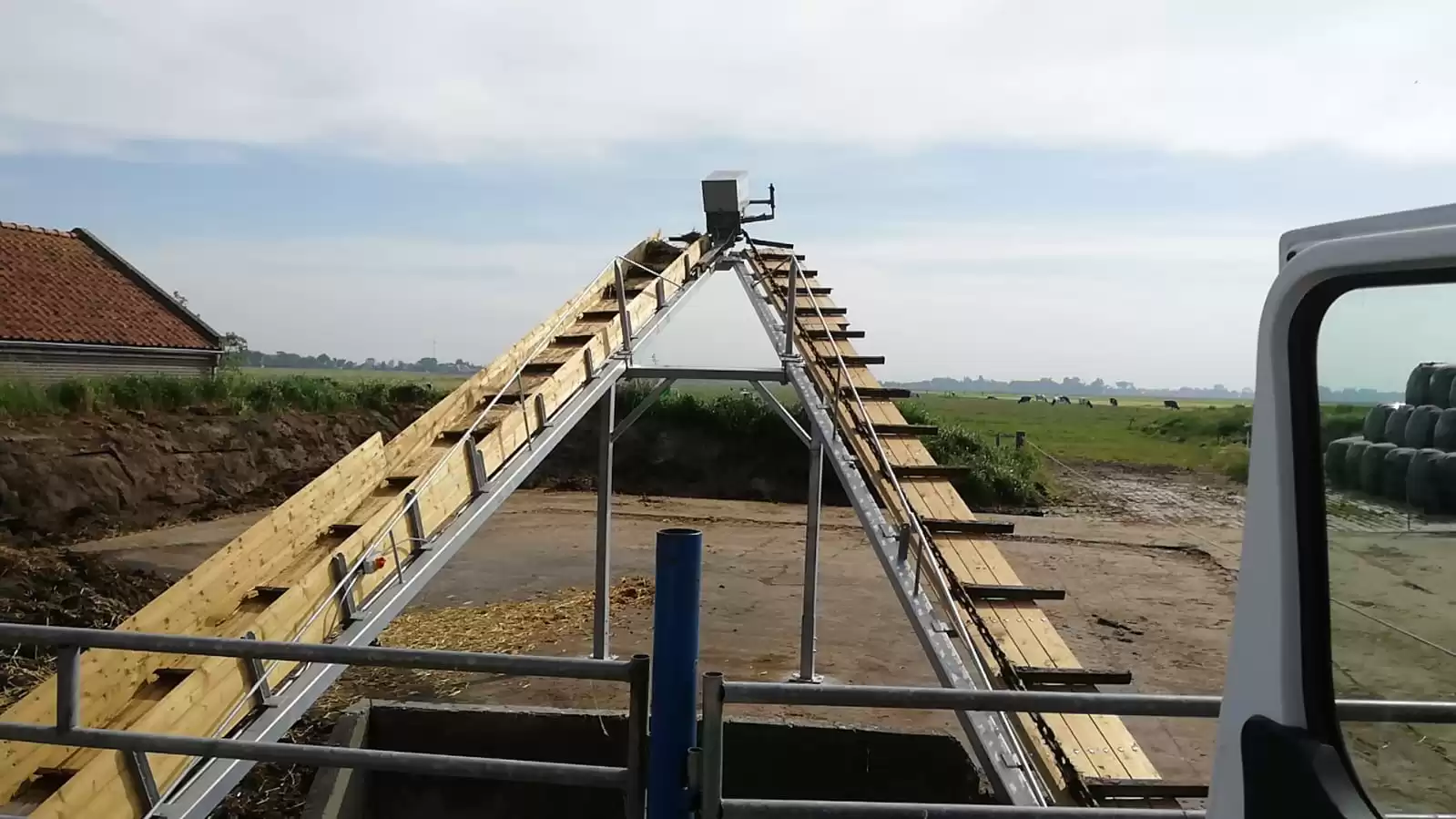 Om de mest op een mooie hoge bult te krijgen in de opslag, kun je kiezen voor een opvoergoot aan het eind van het RKG. Deze is leverbaar van 6 tot en met 12 meter.