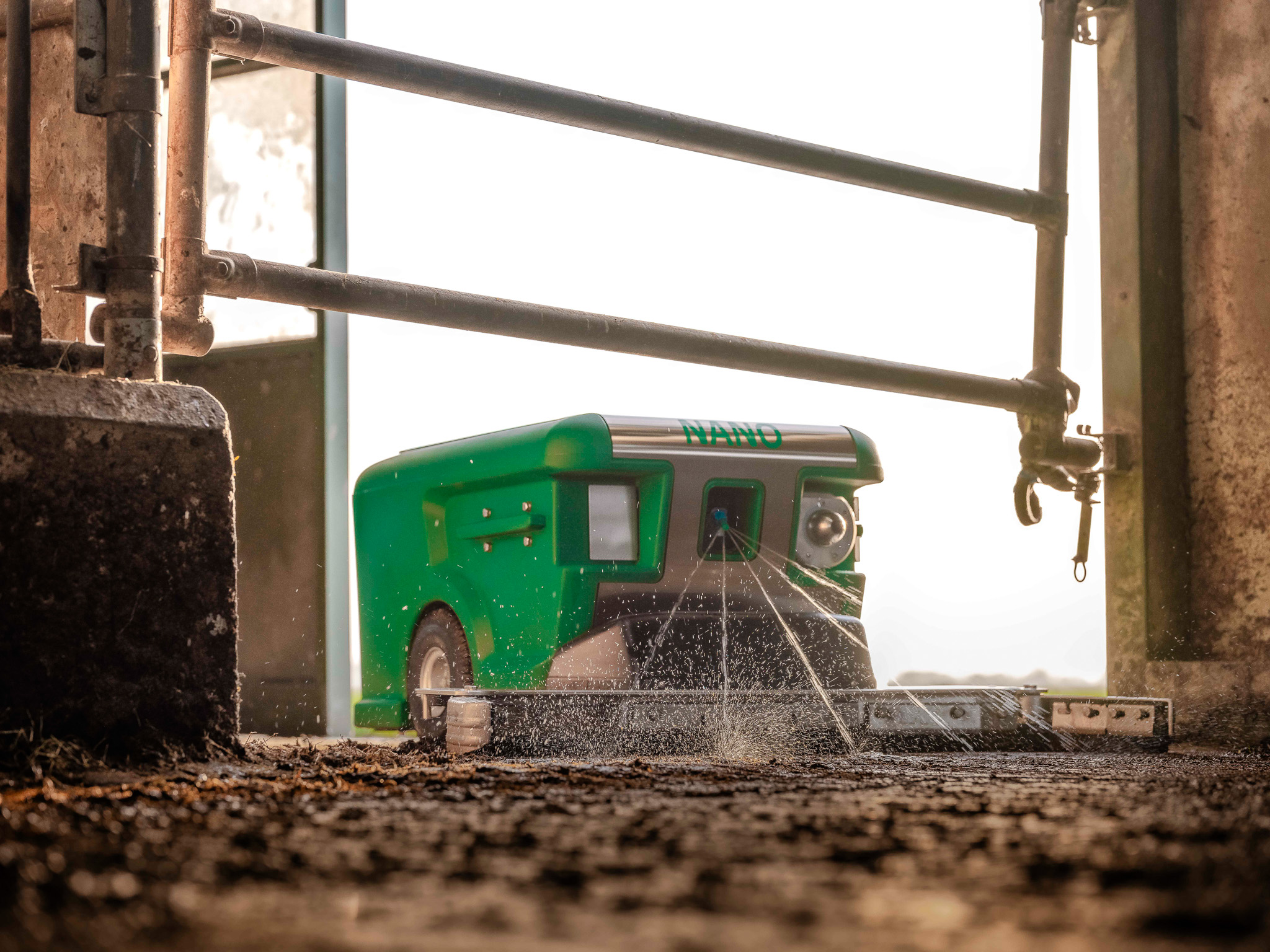 —Compact en wendbaar: waar sommige robots niet in elke stal terecht kunnen kan de NANO ook in smalle mestgangen zijn werk doen